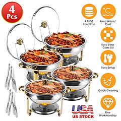 4Pcs Chafing Dish Buffet Set 4.76QT Round Buffet Servers Food Warmer Stainless Steel Catering Chafer with Glass Lid for Warming Cooling Gatherings Banquets Buffets Party Wedding