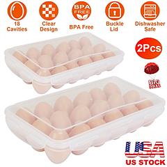 2Pcs Plastic Egg Holder Stackable Egg Storage Box Egg Rack for Refrigerator 18 Cavity Per Container Dishwasher Safe