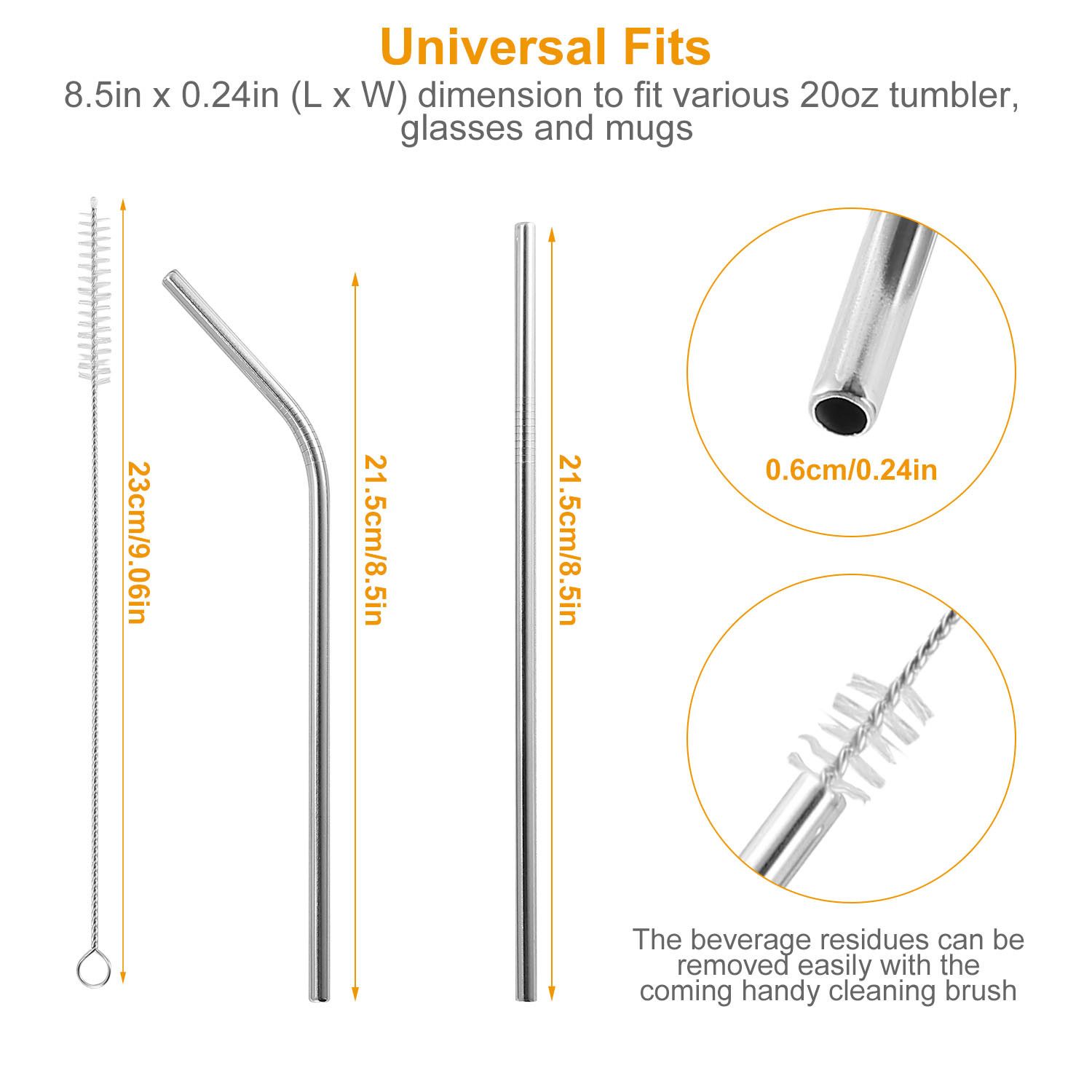 10Pcs 8.5in Stainless Steel Drinking Straws Reusable Metal Drinking Straws for 20oz Tumbler