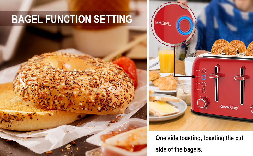 Cancel/ Bagel/ Defrost/reheat settings with LED red lights