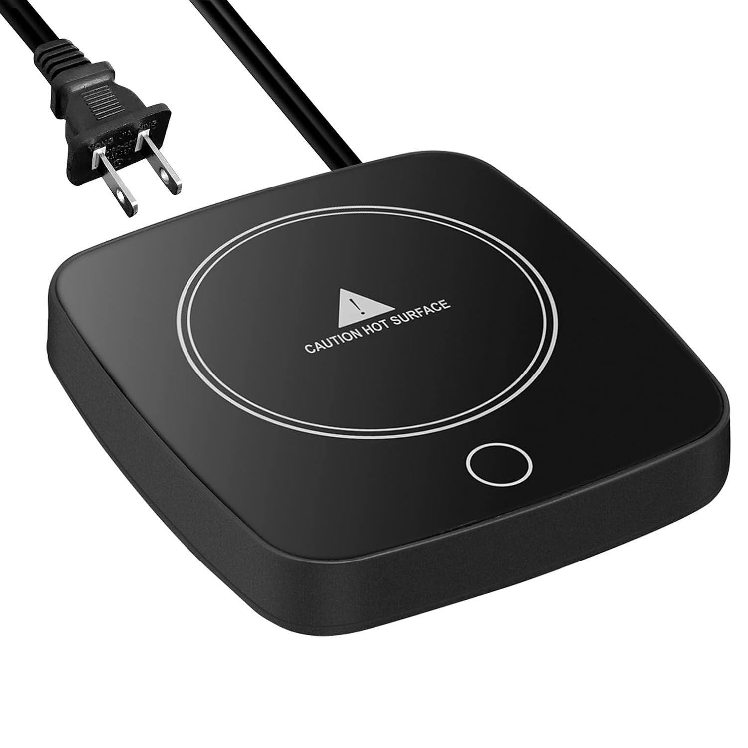 *Wide Compatibility*:With 3.14in diameter heating panel,this cup warmer is compatible with various types of cups,like glass bottle,stainless steel cup,ceramic cup. Made of sturdy and water-resistant ABS material,you can wipe the spilling liquid with soft cloth. And we recommend that the bottom of cup should be flat.