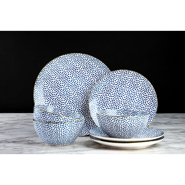 The Dinnerware Black & White Dot Stoneware, 12 Piece Set accommodates four place settings, complete with dinner plates, salad plates, and bowls, this set promises utility and elegance. For care and use, hand wash with dish soap in warm water using a soft sponge. Dishwasher safe. No abrasives. Microwave safe & freezer safe. Not for use in the oven. Do not soak for extensive periods. Item may get hot in the microwave, please use caution.