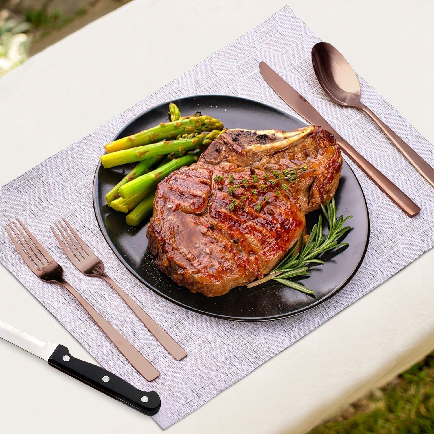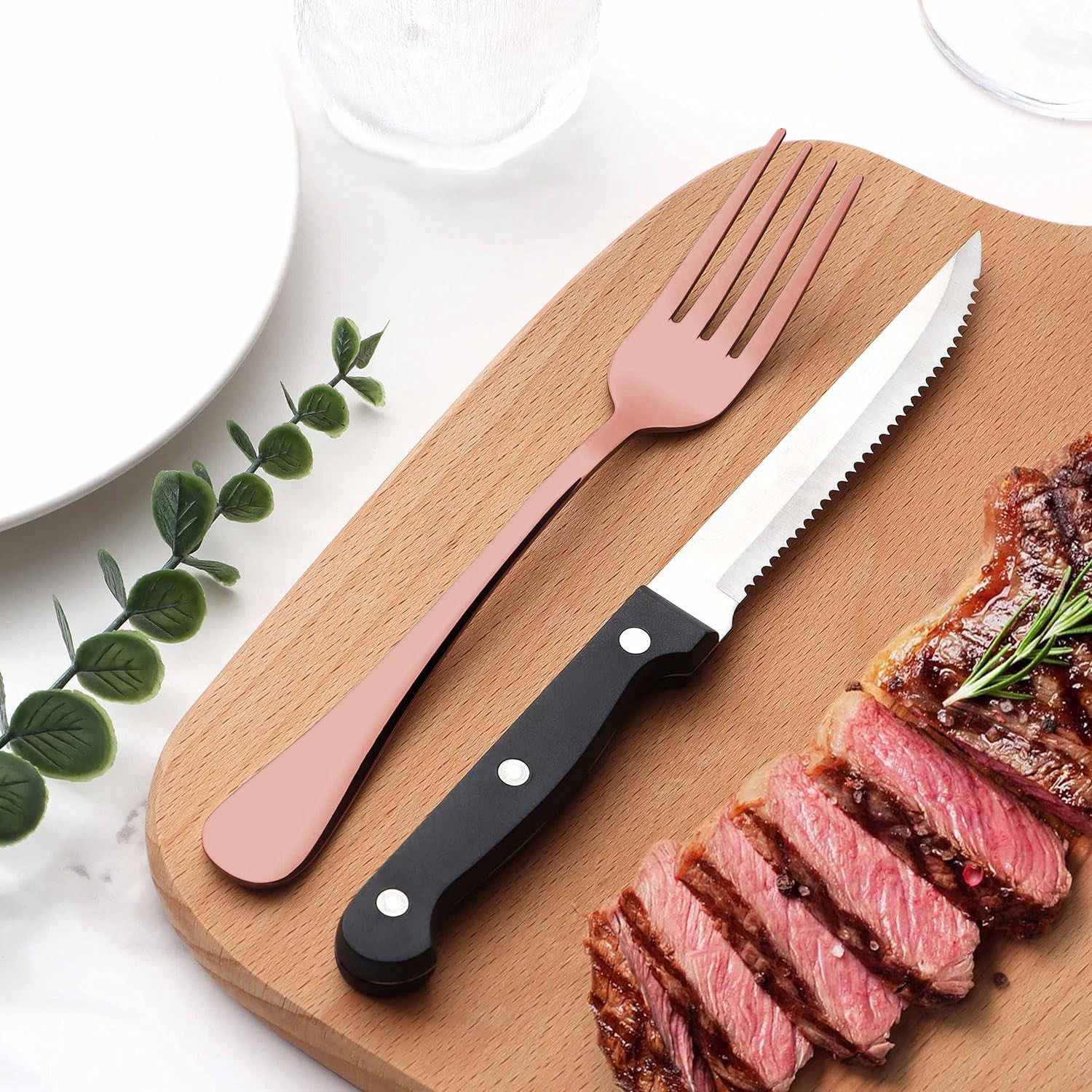 *Advanced Stainless Steel*:Made of 410 stainless steel,this tableware set is smell-free,rust-resistant,durable,sturdy and not able to bend or break,ensuring long lifespan.