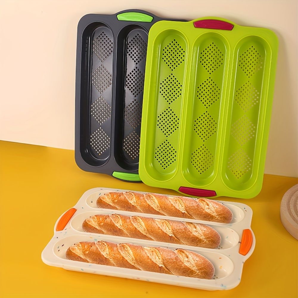 1pc; Silicone Baguette Pan; French Bread Baking Pan; Perforated 3 Loaves Baguettes Bakery Tray; Baking Tools; Kitchen Gadgets; Home Kitchen Items