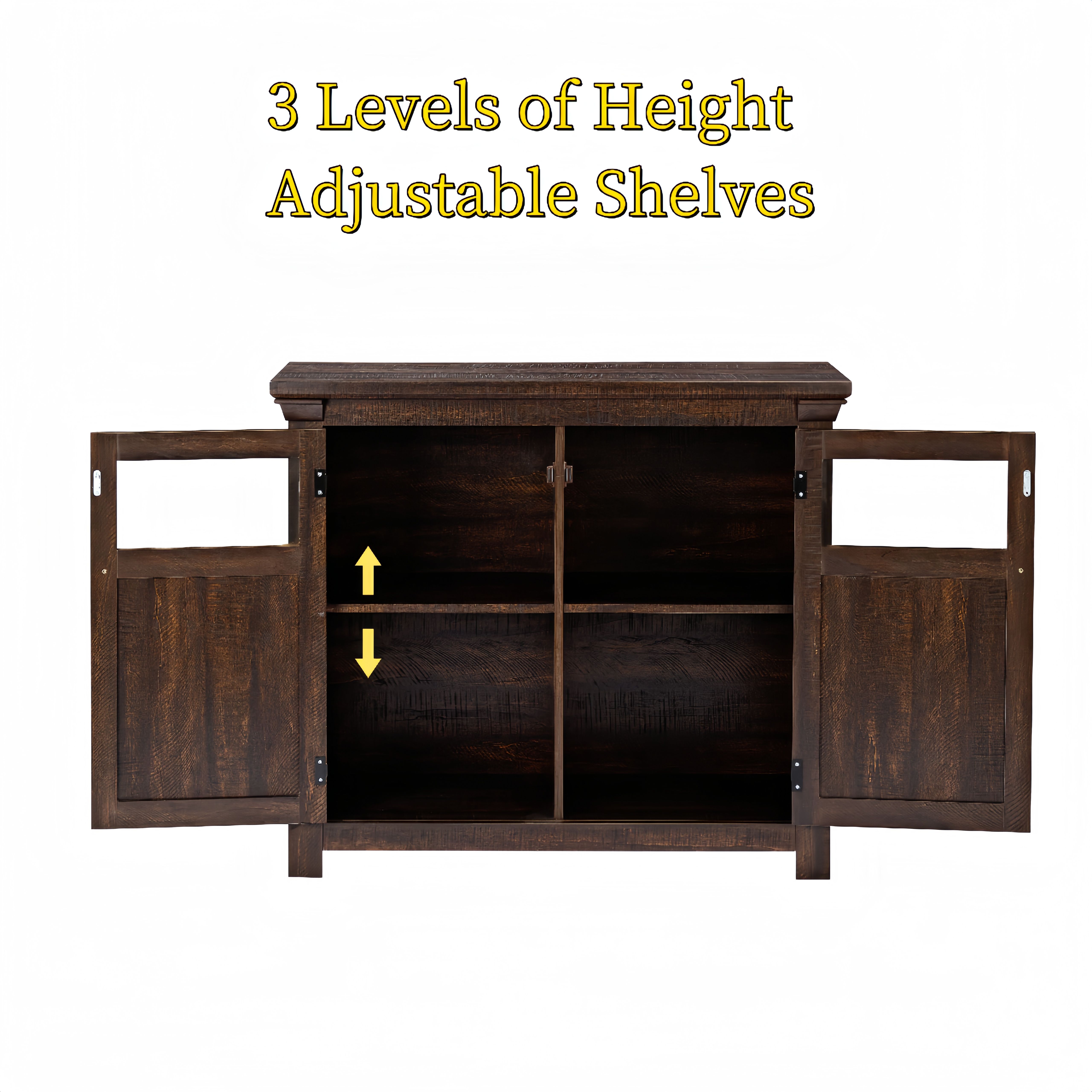 Elegant and spacious, this 2-door cabinet exudes sophistication and functionality. With its ample storage space, it serves as a large buffet sideboard cabinet, perfect for storing your favorite wines and bar essentials. Whether placed in the entryway or living room, this buffet cabinet table doubles as a coffee bar and wine bar, adding a touch of luxury to any space. Its rich finish makes it an ideal storage solution for the dining room, seamlessly blending style with practicality.