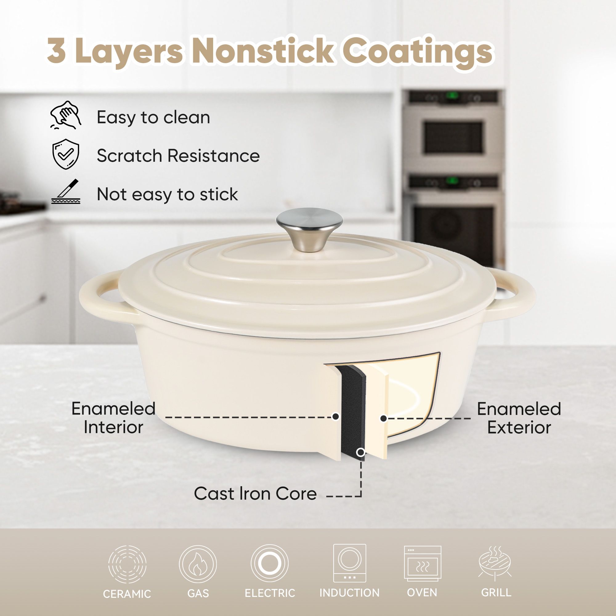 ��CLEAN IS CONVENIENT: The outer layer of this Dutch oven is a non adhesive coating that makes it easy to clean with a soft sponge or cloth. If you want to remove stains that are difficult to remove, you can soak them in warm water for 1 to 2 hours or more, and then use baking soda or neutral detergent to remove them.Tips: Do not use stainless steel wire balls or hard tools that may leave scratches for cleaning.