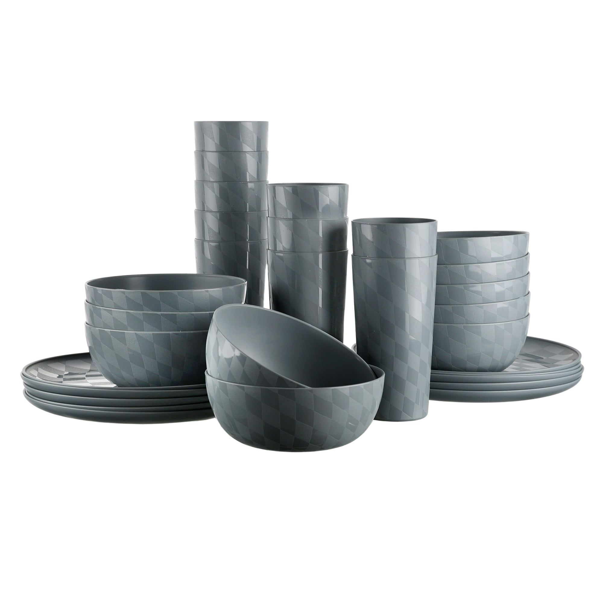 Home > 30-Piece Plastic Check Pattern Dinnerware Bundle Set