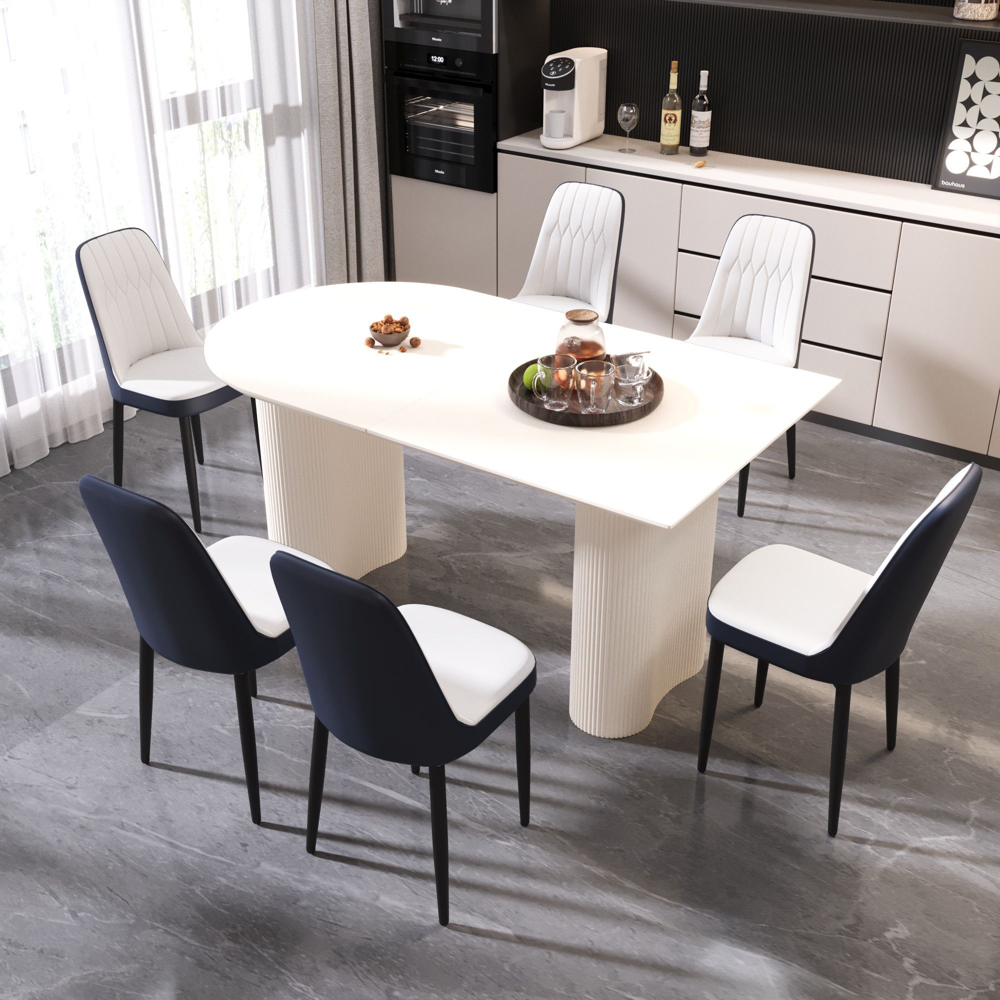 63 "medieval modern cream style MDF dining table and PU dining chair set 4. Assemble Desktop and black metal leg dining chair set 63 "medieval modern cream style MDF dining table and PU dining chair set 4. Assemble Desktop and black metal leg dining chair set 63 "medieval modern cream style MDF dining table and PU dining chair set 4. Assemble Desktop and black metal leg dining chair set