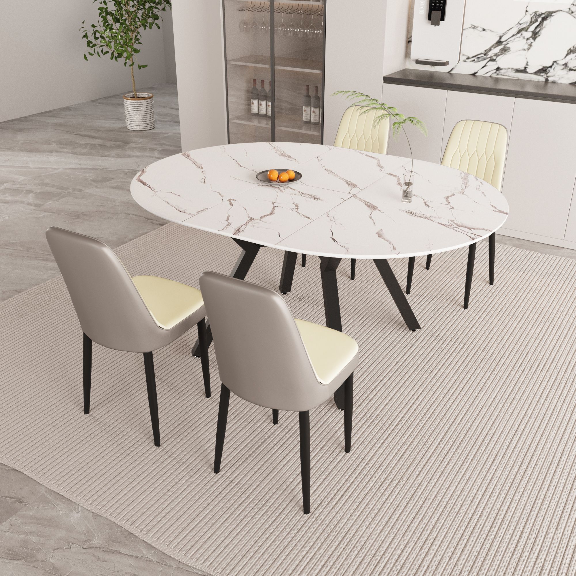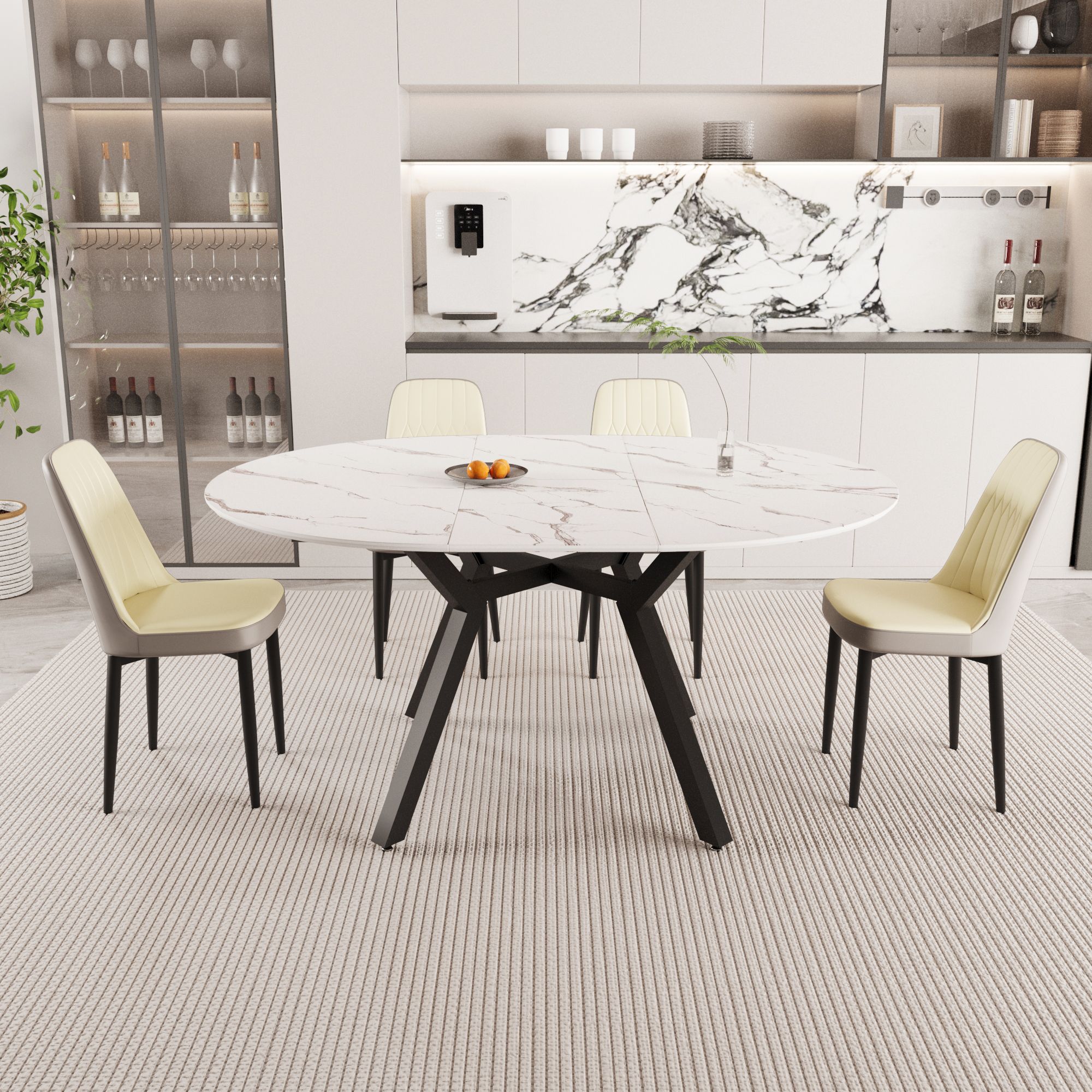 47-63" expandable circular dining tables , equipped with 4 PU fabric thick cushioned dining chairs and an elegant and spacious dining table 47-63" expandable circular dining tables , equipped with 4 PU fabric thick cushioned dining chairs and an elegant and spacious dining table 47-63" expandable circular dining tables , equipped with 4 PU fabric thick cushioned dining chairs and an elegant and spacious dining table