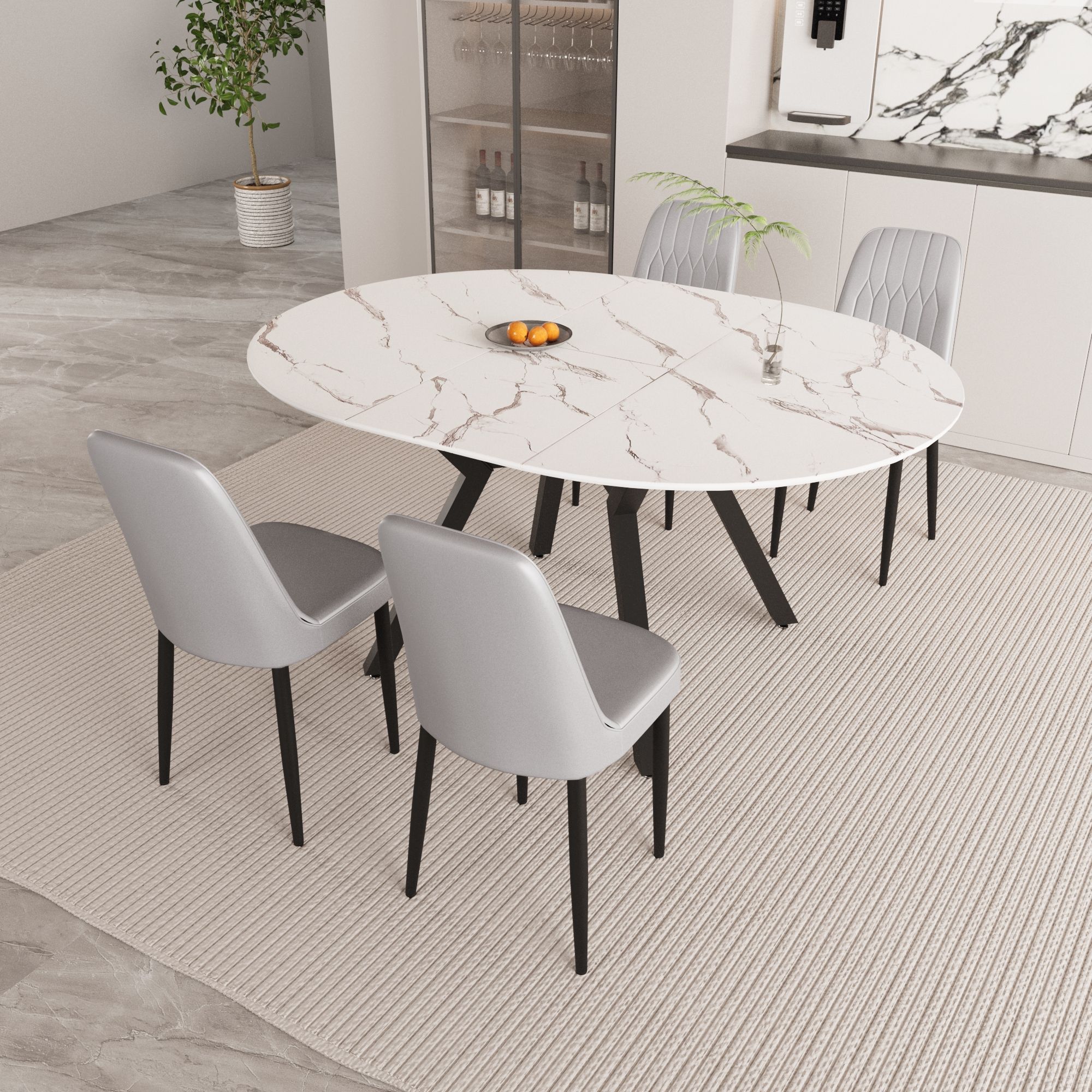 Home > 47-63" expandable circular dining tables , equipped with 4 PU fabric thick cushioned dining chairs and an elegant and spacious dining table