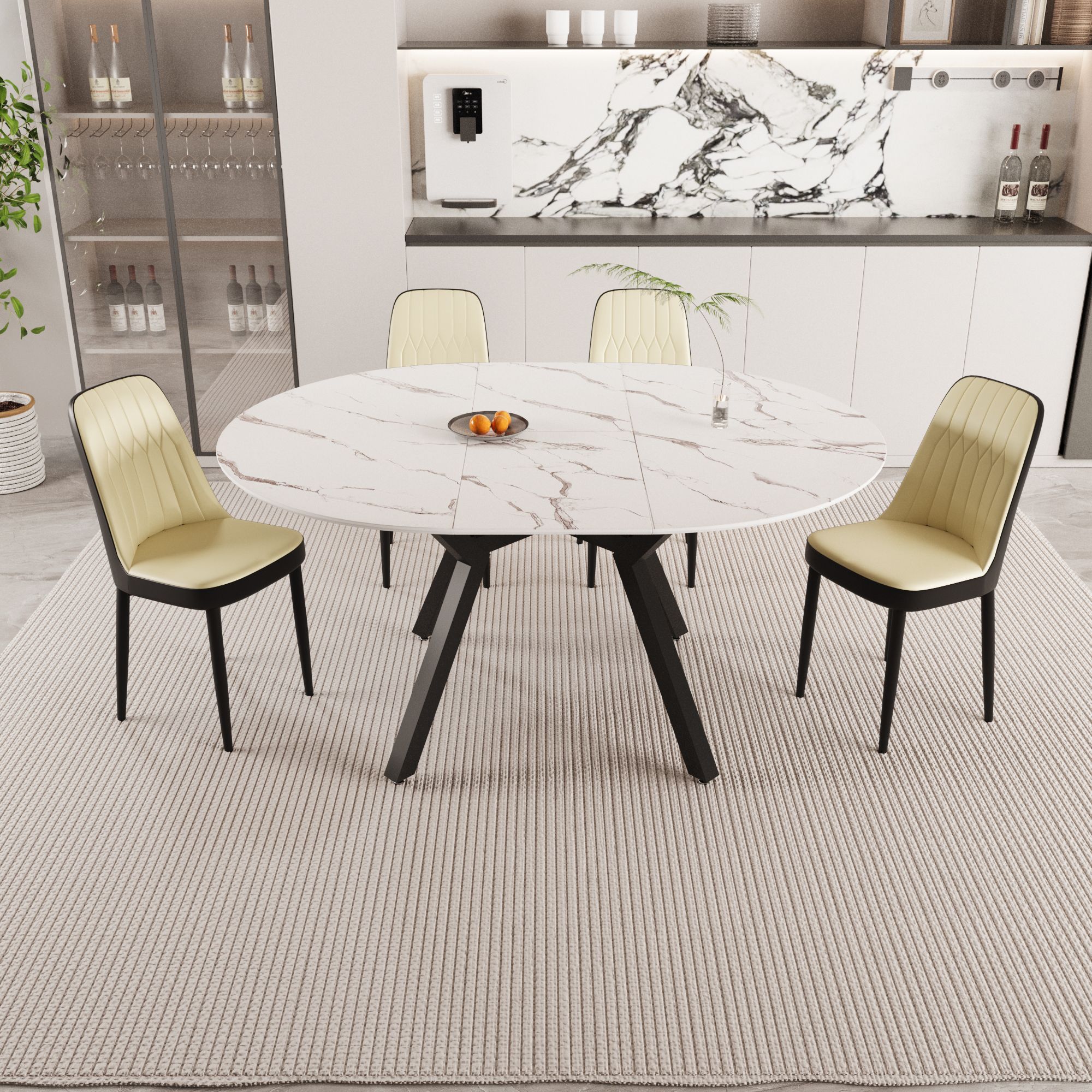 2.2.Comfortable dining table for 4-6 people: Made of comfortable medium density fiberboard material, its beauty lies in its texture and glossy charm. Simple and elegant, with a smooth surface like jade. The natural texture of the desktop complements the minimalist black metal legs, and the legs equipped with anti slip pads not only greatly enhance support, but also highlight the beauty of the simple structure, meeting people's needs for comfort and minimalist living.