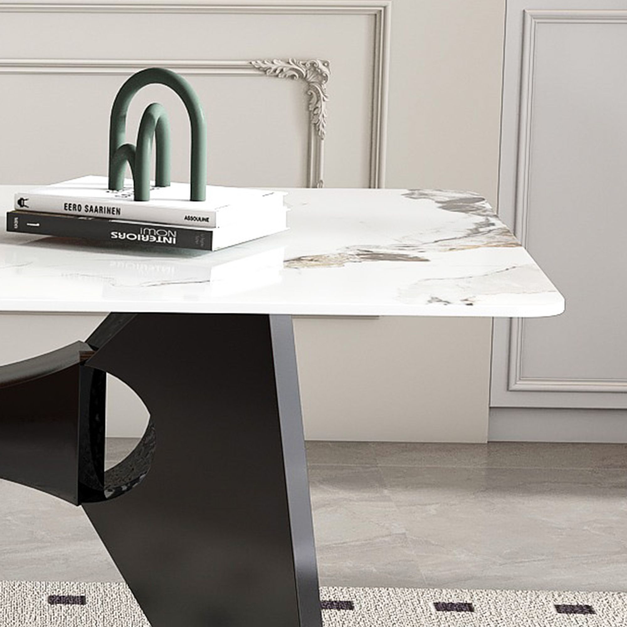 Easy to clean: The table top is made of glossy stone with zero water absorption, and the base has a wear-resistant coating, so you only need to wipe it with a towel every day to keep the table fresh