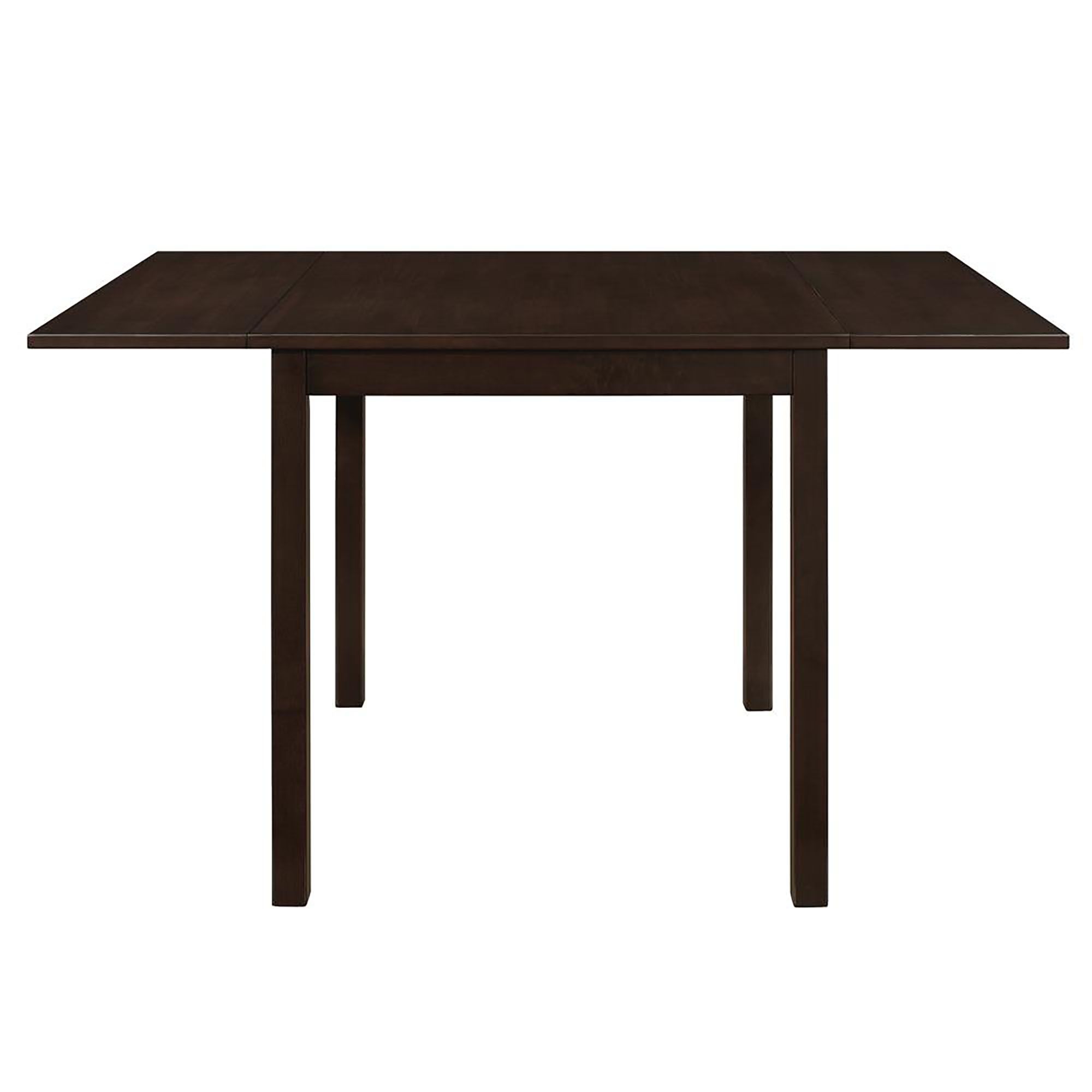 Perfect for creating a more intimate dining space in an apartment or small home, this dining table features a cappuccino wood finish and square straight legs. With a casual look, this dining table offers to make the most of the space with a drop leaf on each side that can elevate to add extra seating space for guests.
