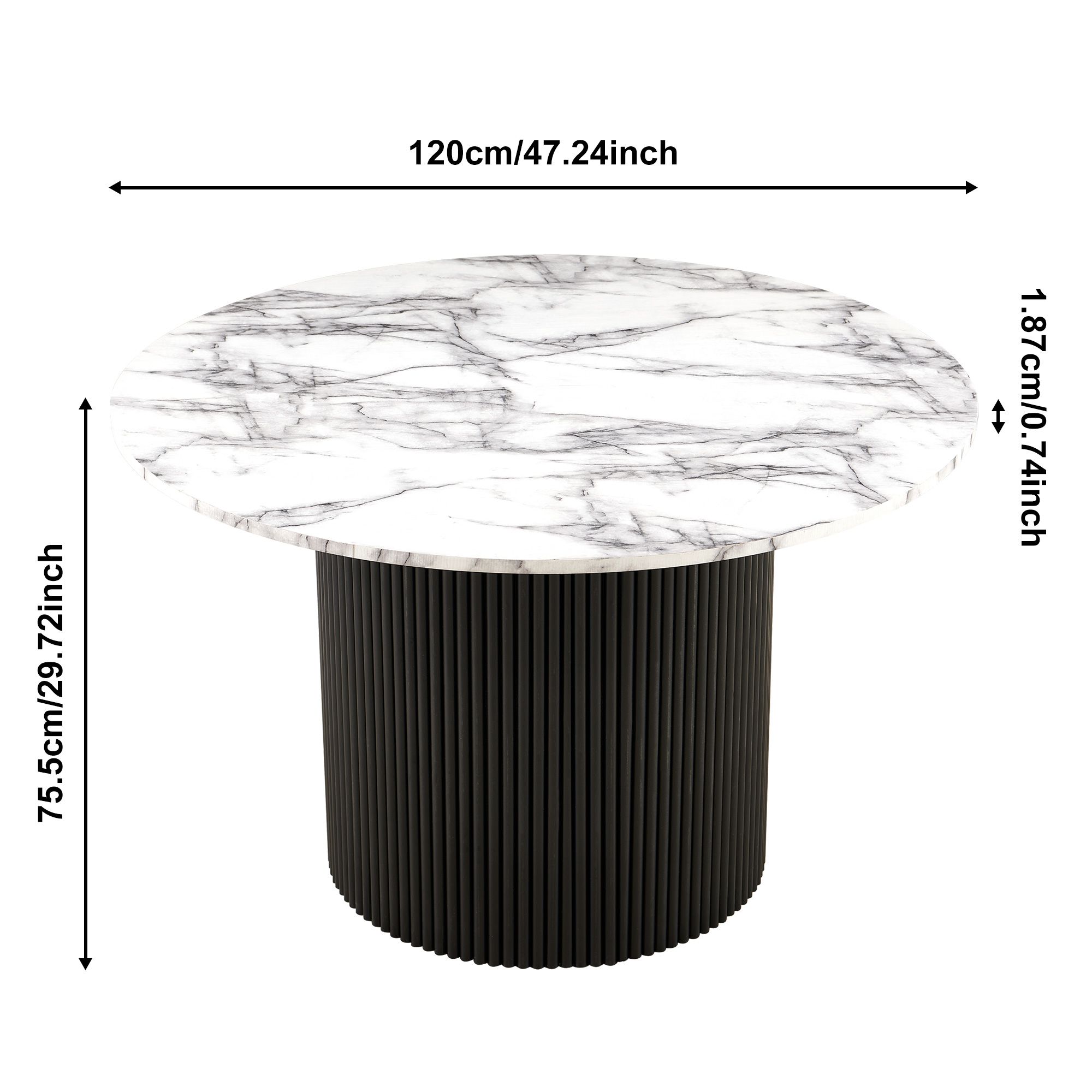 Home > 47 Inch Round Dining Table for 4, Imitation White Marble Grain MDF Tabletop Modern Kitchen Table