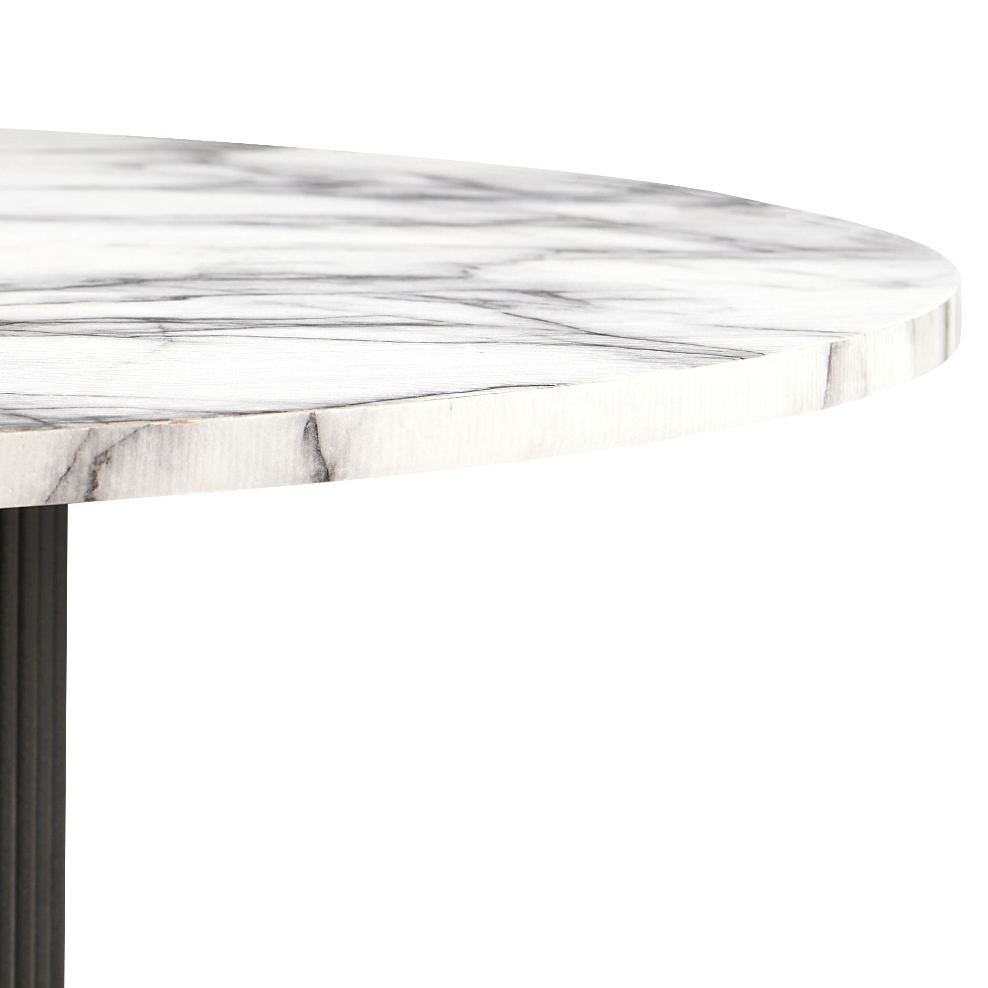 Imitation White Marble Grain MDF Tabletop 47 Inch Round Dining Table for 4The mid-century wood bottom and metal frame table is solid and stable, and the Roman column design appears more elegant. The special fixing design of the table legs can make the table more sturdy. Simple appearance, perfect integration of various modern homes, it is an ideal dining table choice for kitchen room.