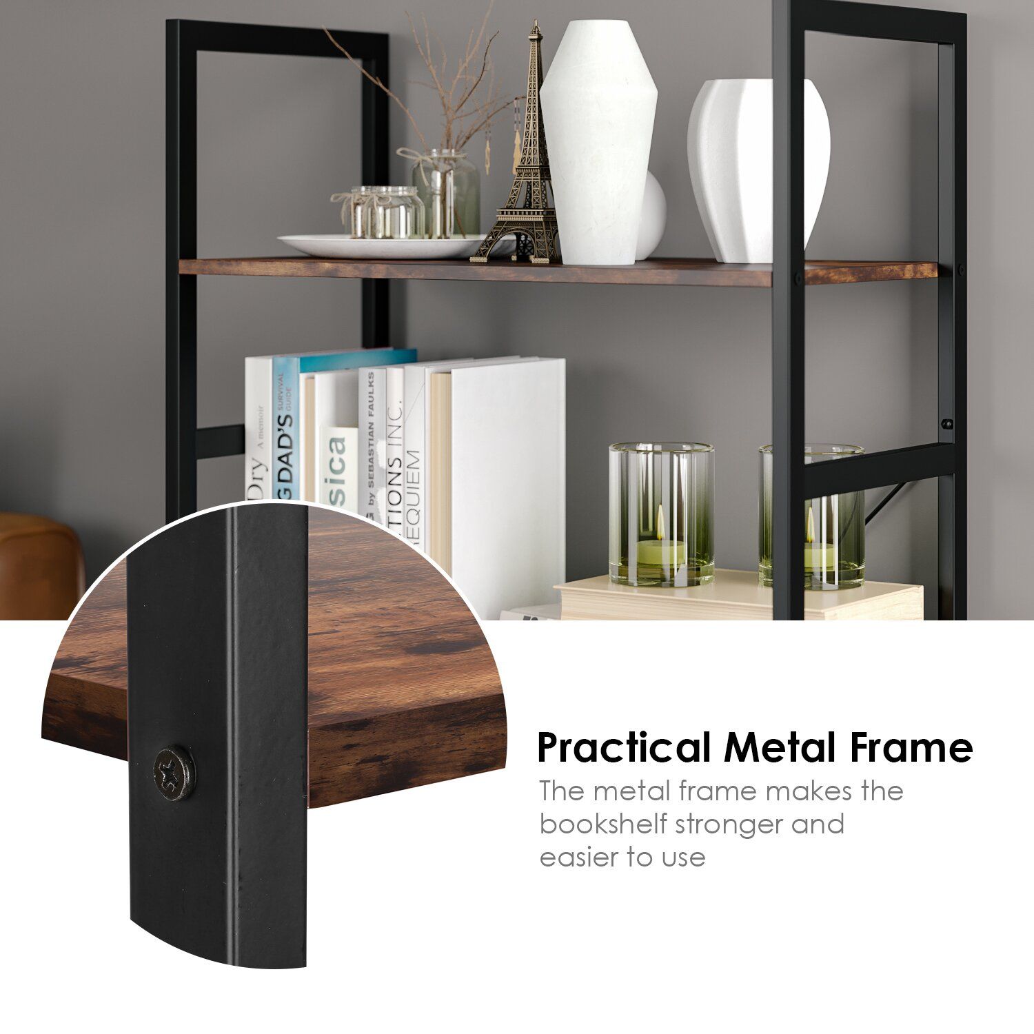 1.Sturdy Durability and Stability: Our metal frame 5 tier bookcase is made of high-quality iron and selected particle board, absolutely strong and stable due to the excellent metal brackets and thick panels.