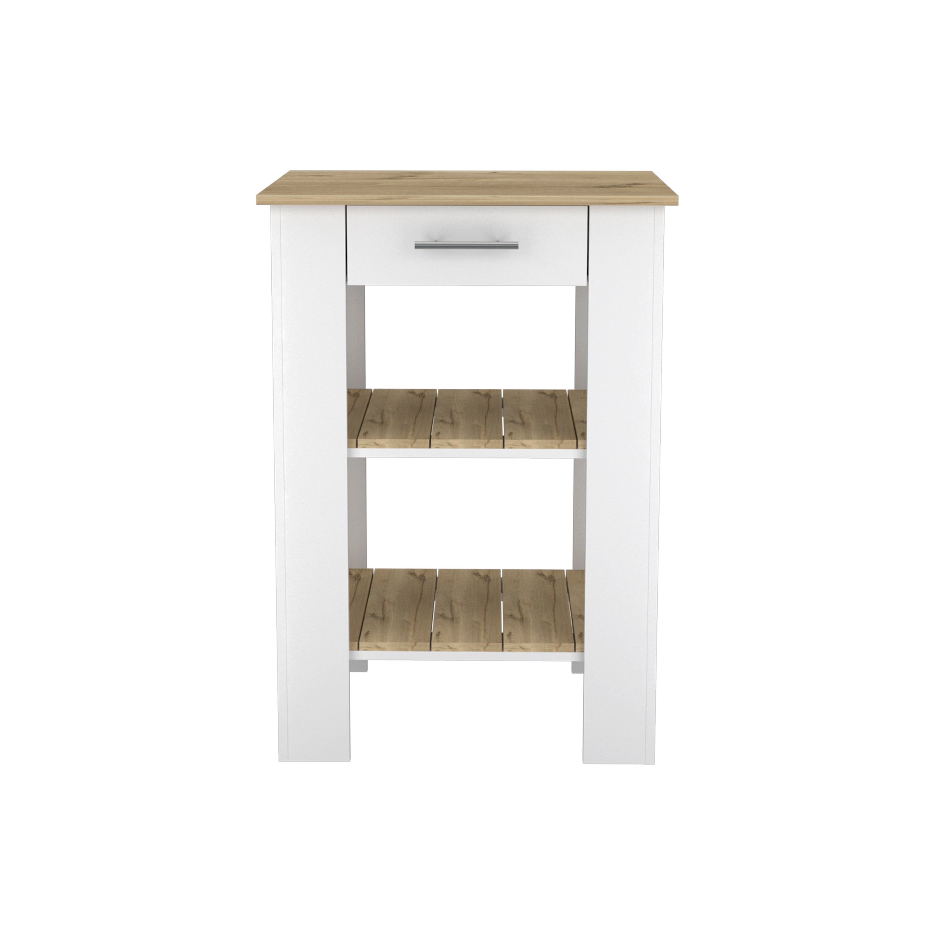 Danville 2 Piece Kitchen Set, Kitchen Island + Kitchen Cart, White / Light Oak