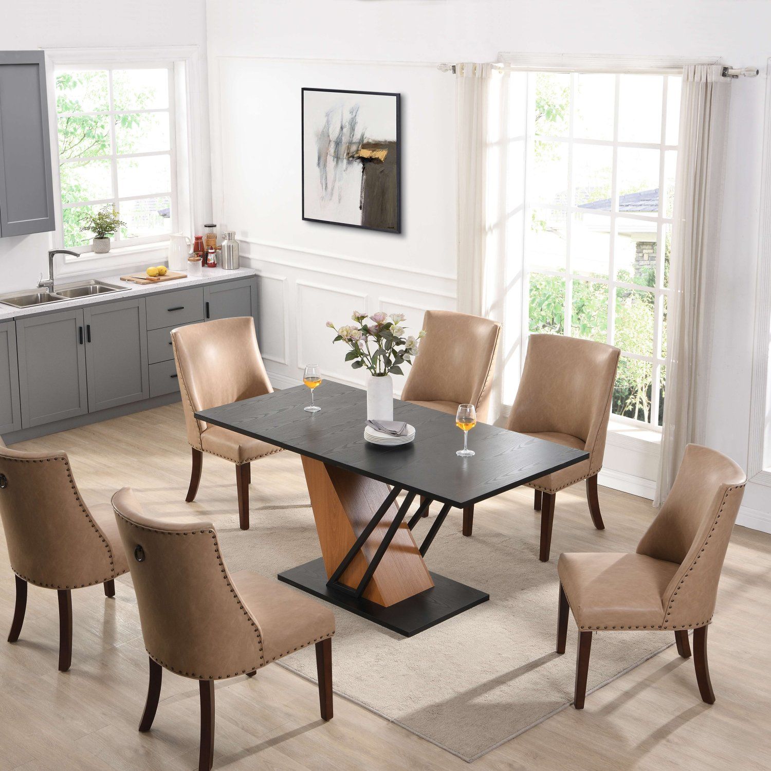 Extendable Tabletop for Flexible Use – Designed with a three-piece splicing tabletop, this dining table easily extends or contracts to accommodate different seating needs, making it perfect for both daily meals and family gatherings.
