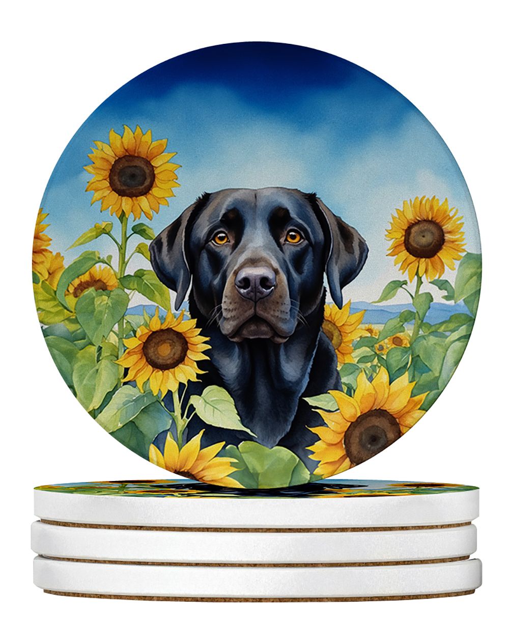Home > Labrador Retriever in Sunflowers Large Sandstone Coasters Pack of 4 Absorbent Round Coasters Decor Gifts for Men or Women, 4 in, Multicolor
