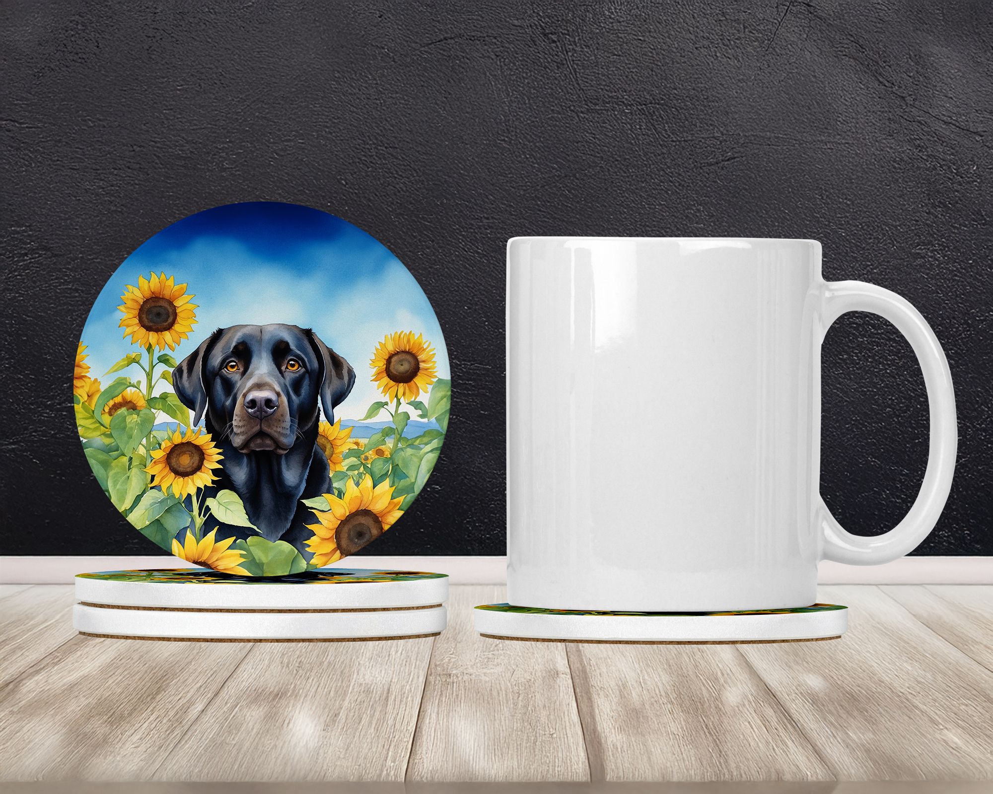 Labrador Retriever in Sunflowers Large Sandstone Coasters Pack of 4 Absorbent Round Coasters Decor Gifts for Men or Women, 4 in, Multicolor