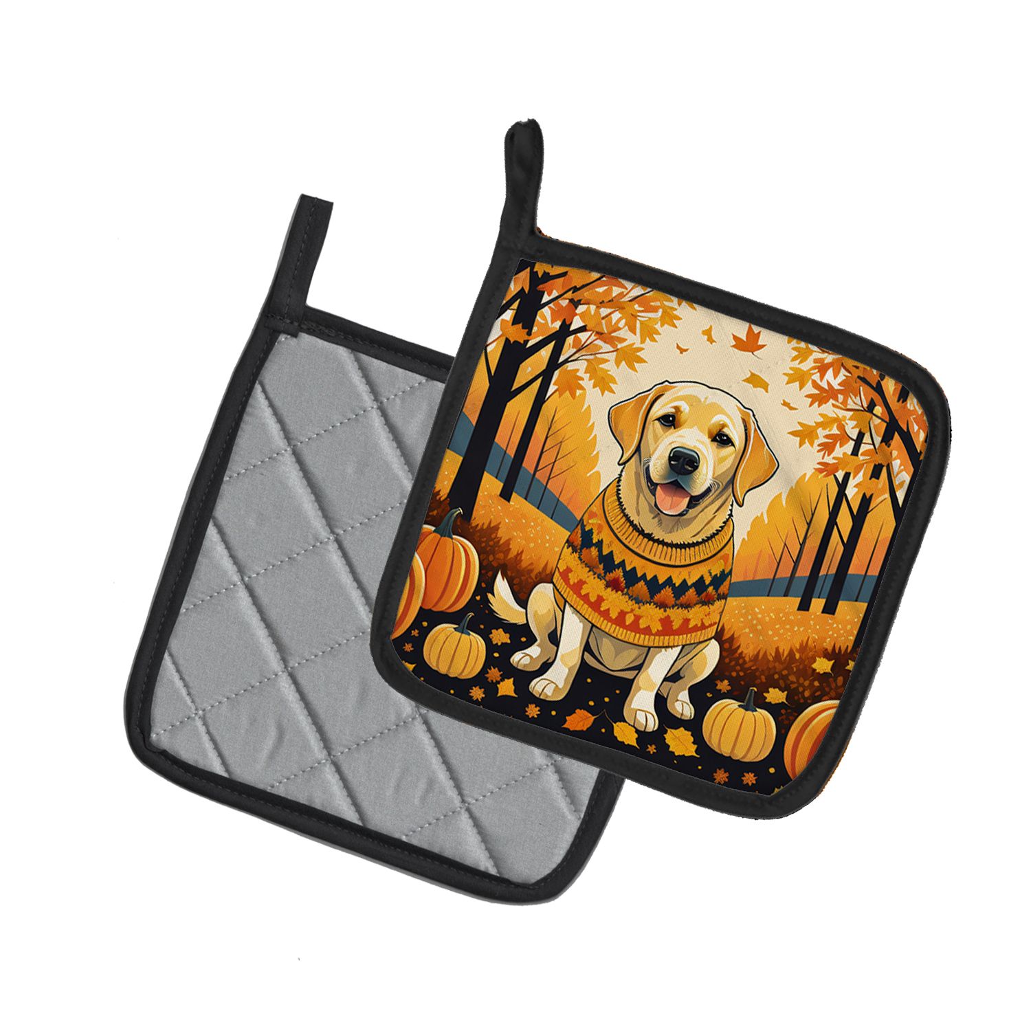 Home > Yellow Labrador Retriever Fall Pair of Pot Holders Kitchen Heat Resistant Pot Holders Sets Oven Hot Pads for Cooking Baking BBQ, 7 1/2 x 7 1/2