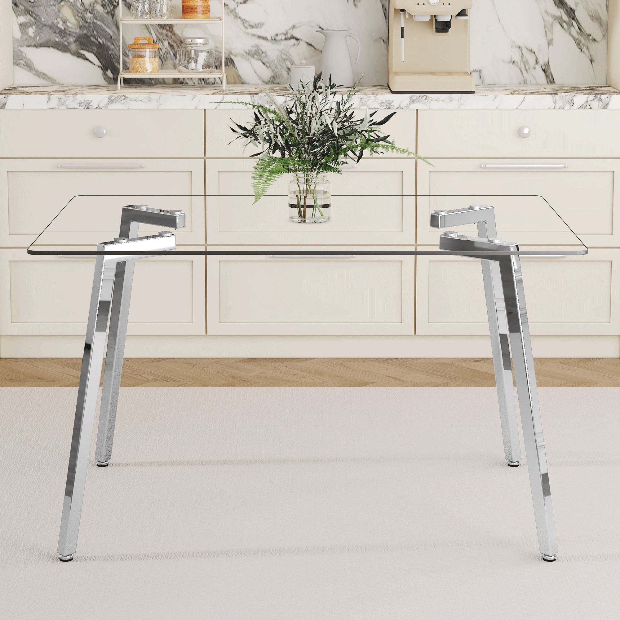 51 * 31.5 inch rectangular dining table: transparent glass paired with silver seven character legs 51 * 31.5 inch rectangular dining table: transparent glass paired with silver seven character legs 51 * 31.5 inch rectangular dining table: transparent glass paired with silver seven character legs