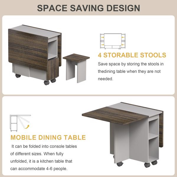 • Multi-functional folding table: It can be folded into console tables of different sizes. When fully unfolded, it is a kitchen table that can accommodate 4-6 people. When folded half or fully, it can be a desk, coffee table, kitchen island, computer desk, end table and hallway, saving space and being versatile.