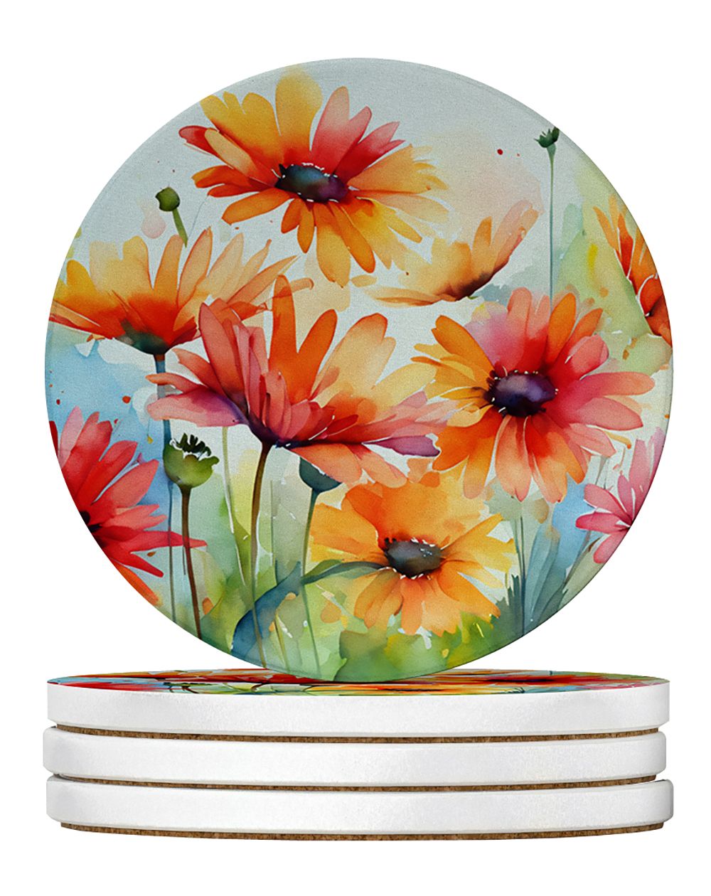 Home > Gerbera Daisies in Watercolor Large Sandstone Coasters Pack of 4 Absorbent Round Coasters Decor Gifts for Men or Women, 4 in, Multicolor